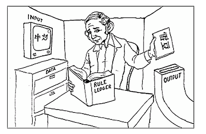 El argumento de la Habitación China sostiene que la persona al interior de la habitación no sabe que le están preguntando ni lo que está respondiendo. La persona simplemente ejecuta una acción mecánica siguiendo algunas reglas sin entender el idioma. El entendimiento es más que la relación entre símbolos y significados dado que existe una representación de estos símbolos.